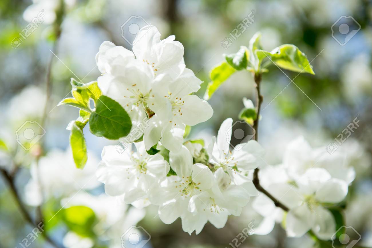 Apple Blossoms Blooming Apple Tree Branch With Large White Flowers