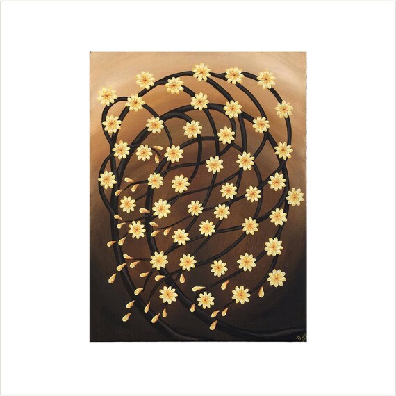 Cream Cherry Blossom Tree Painting Original Flower Painting Japanese Flower Art Blossom Tree Artwork Blossom Design Wall Decor